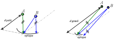Quand un dispositif optique observe des objets qui sont proches, les rayons lumineux provenant d'un objet ne sont pas tous parallèles, et des rayons parallèles ne proviennent pas obligatoirement d'objets qui sont dans la même direction (comparé à l'axe optique).