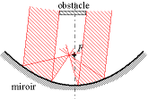D'autre part, si un obstacle bouche partiellement l'ouverture de l'instrument d'optique, cela va diminuer l'intensité visualisée, mais n'altèrera pas l'image, dans la mesure où il suffit de prendre des rayons venant à côté de l'obstacle (n'oubliez pas que seule la direction des rayons compte). Ainsi, la présence d'un petit miroir devant l'ouverture du grand miroir dans les télescopes de Newton et de Cassegrain ne gêne pas la formation de l'image. La présence du capteur devant le miroir d'une parabole de télévision ne gêne pas la réception des ondes.