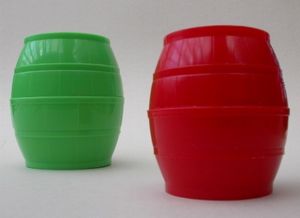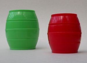 Ici, le jeu pourrait consister à retrouver la hauteur du tonnelet rouge, sachant que celle du tonnelet vert est de 9 cm et que les deux jouets sont posés sur un même plan horizontal. Il n'est pas gagné d'avance !